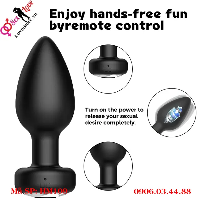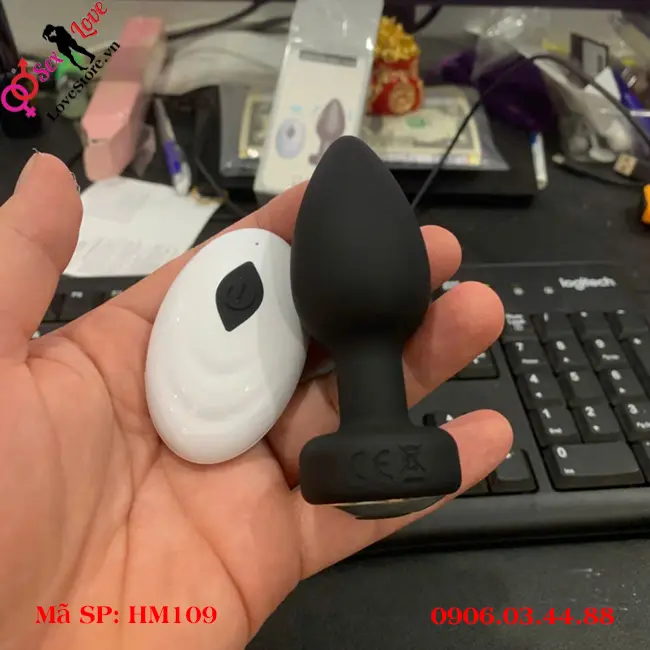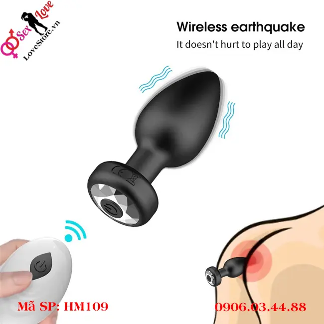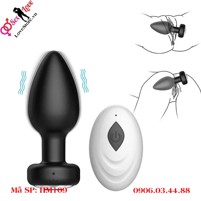 Phích căm hậu môn silicon có rung điều khiển từ xa HM109